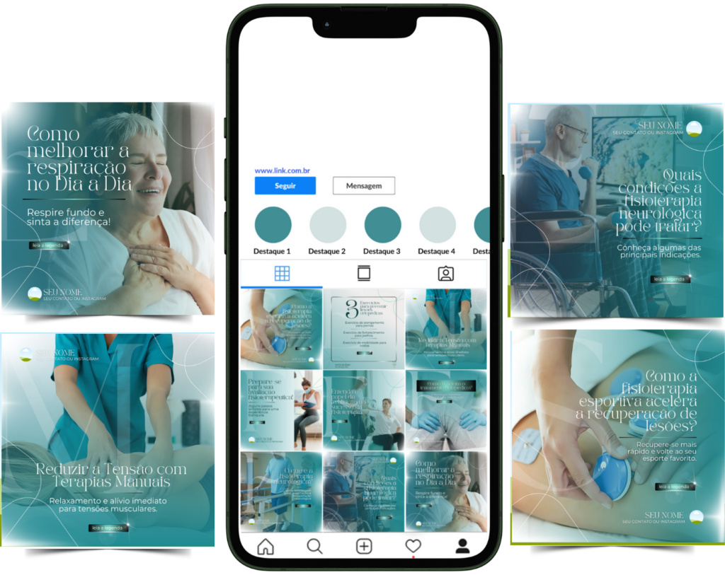 Imagine poder compartilhar conteúdos sobre Avaliação Fisioterapêutica, Fisioterapia Ortopédica, Fisioterapia Neurológica, Fisioterapia Cardiorrespiratória, Fisioterapia Geriátrica, Terapias Manuais e muito mais, com postagens visualmente atrativas que falam diretamente sobre as necessidades dos seus pacientes. Esse pack foi desenvolvido para transformar o seu Instagram em uma verdadeira ferramenta de marketing, gerando interesse, educando seu público e convertendo seguidores em pacientes reais para seu consultório ou atendimento online.